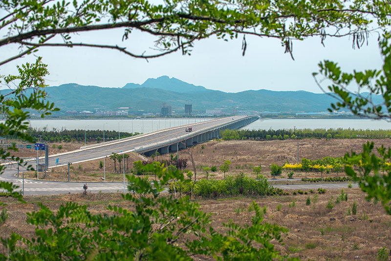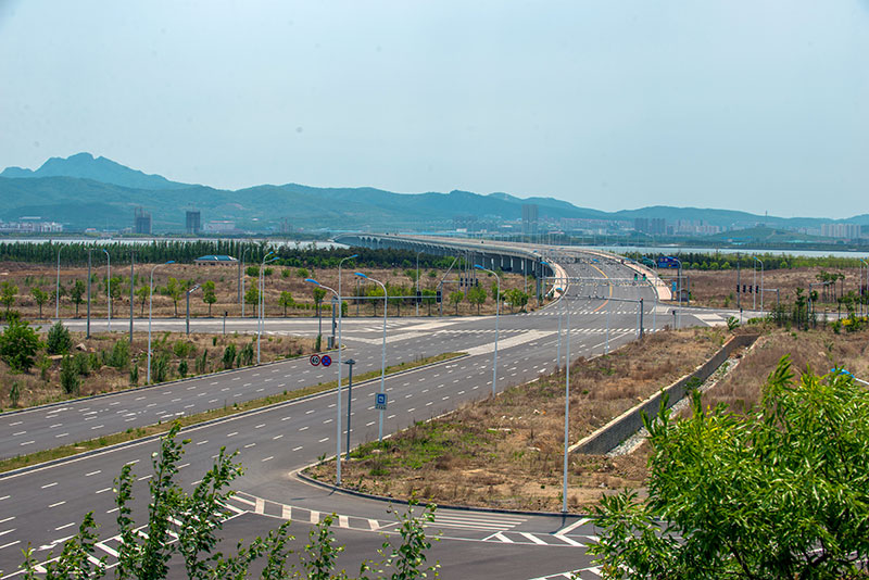 十四號路跨海橋項目橫跨普蘭店灣,南起石河街道北海村,北至炮臺街道鮑魚島村,連接南岸規(guī)劃濱海路和北岸規(guī)劃三號路,通車后使普蘭店灣中段南北兩岸間的車程縮短了30分鐘左右。線路全長2881.82米,總投資約8億元。